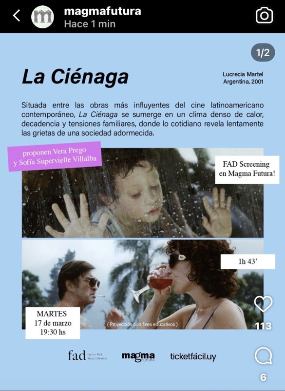 Situada entre las obras más influyentes del cine latinoamericano contemporáneo, La Ciénaga se sumerge en un clima denso de calor, decadencia y tensiones familiares, donde lo cotidiano revela lentamente las grietas de una sociedad adormecida. Pop y vino junto a @bodegajoseignacio PUNTUAL
