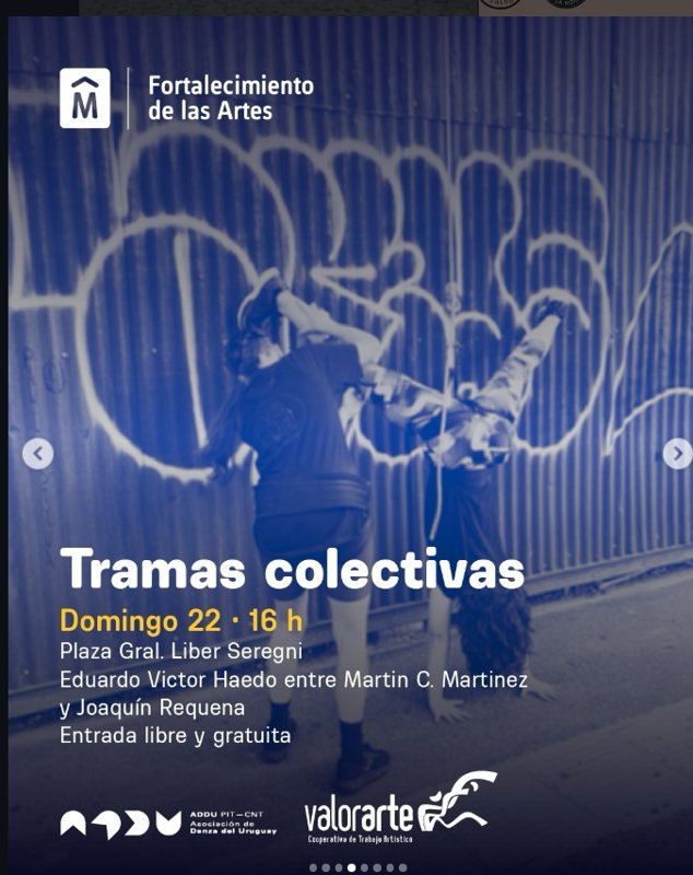 Tramas Colectivas es un ciclo de 4 encuentros de danza aérea en arnés que propone intervenir de forma colectiva el espacio público a través de prácticas guiadas. La propuesta invita a experimentar la relación entre cuerpo, arquitectura y ciudad, generando espacios de encuentro en distintos barrios de Montevideo. Información: ✨ Actividad gratuita 🌈 Abierta y no excluyente 👥 Cupos limitados (por orden de llegada) +16 años 🤸 No se requiere experiencia previa