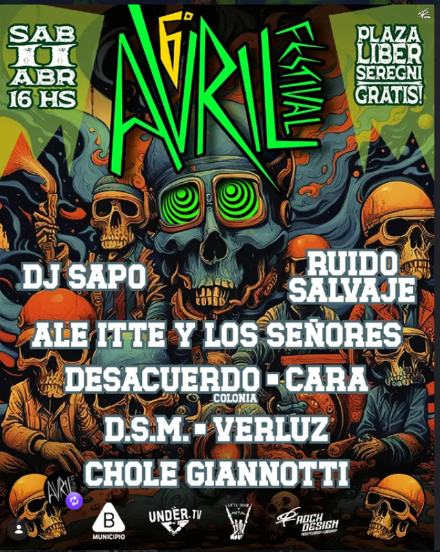 Llega la VI edición de Avril Festival, un encuentro que rinde homenaje al rock uruguayo desde sus cimientos, reuniendo artistas de distintas generaciones y abriendo escenario para nuevas bandas de la escena nacional. En vivo: Ruido Salvaje Ale Itte y Los Señores Desacuerdo (Colonia) Cara D.S.M. Verluz Chole Giannotti DJ Sapo