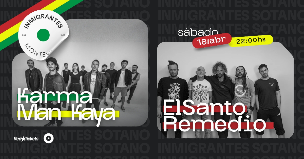 Karma Man Kaya y El Santo Remedio llegan al escenario de Inmigrantes en una noche llena de buena vibra y Reggae Music! Dos bandas referentes y con larga trayectoria en la escena musical presentando canciones nuevas como sus temas clásicos! Es un noche única que no puedes dejes pasar!