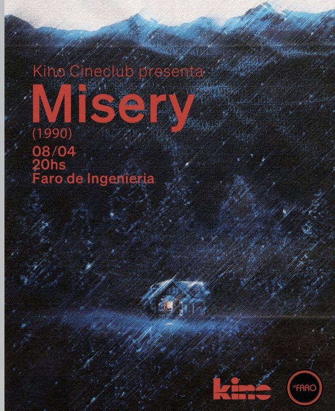 Este miércoles nos encontramos en el Faro de Ingeniería para una nueva función de Kino Cine Club. Proyectamos Misery (1990), dirigida por Rob Reiner. Tras un accidente, el aclamado novelista Paul Sheldon es rescatado por una enfermera que afirma ser su mayor admiradora. Su obsesión toma un giro oscuro cuando lo mantiene cautivo en su remota casa de Colorado. Además, tendremos barra abierta para quienes quieran acompañar la función con algo para tomar o comer durante la proyección.