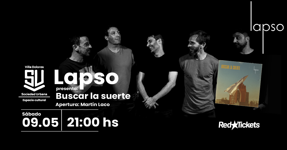 LAPSO , banda nacida en el estallido del rock de los años 2000, presenta en vivo su nuevo álbum Buscar la Suerte . Un puñado de canciones que vibran con honestidad emocional y que invitan a un encuentro sin prejuicios: a reconocernos en lo que duele, pero también en lo que nos impulsa. El show también recorrerá otros momentos de su historia, con canciones de sus discos anteriores: Lapso , Días Lúcidos y Sincro . Una noche de música para dejar de esperar que las cosas sucedan y salir a buscarlas. -------------------------------------------------- (Formato del show: de pie) Conocé más sobre la SUVD: https://sociedadurbanavilladolores.com