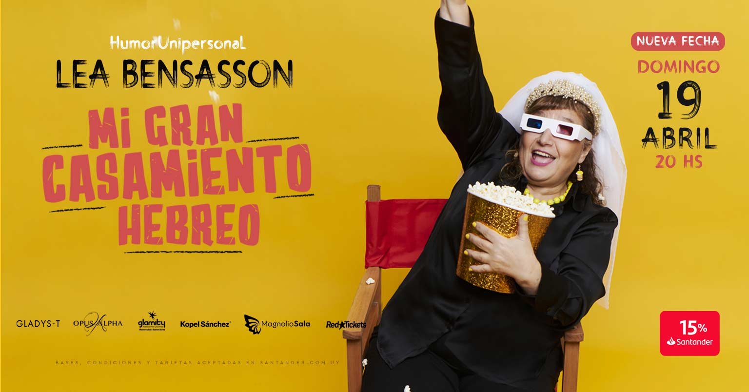Mi Gran Casamiento Hebreo es una celebración escénica de identidad, resiliencia y humor. Un show donde la artista uruguaya Lea Bensasson comparte, entre carcajadas y canciones, su particular mirada sobre las costumbres, los mandatos y los vínculos en la vida judía, con una voz profundamente femenina y autobiográfica. Con una mezcla potente de stand up y canciones originales, el show honra la historia de las mujeres judías y su extraordinaria capacidad de adaptación, transmisión cultural y resistencia generacional. En este espectáculo, Lea rinde homenaje al humor judío que la formó desde niña, especialmente al querido Norman Erlich, capo cómico argentino cuya irreverencia y ternura inspiraron su camino artístico. En vivo verán la sensibilidad y la gracia de una artista singular, que expone varios mundos desde el humor, el ritmo y la emoción a través de su voz. Es un espectáculo íntimo y universal a la vez, que nos invita a reírnos de lo que somos o de lo que intentamos ser, sin perder e