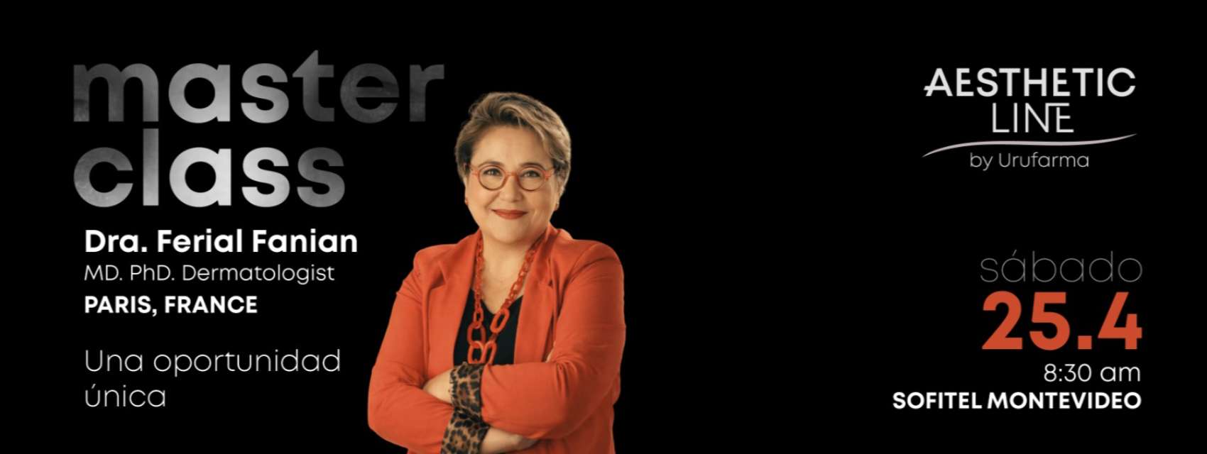 MASTER CLASS Dra. Ferial Fanian MD. PhD. Dermatologist Scientific Director FILLMED PARIS, FRANCE sábado 25.4 8:30 am – SOFITEL MONTEVIDEO Una oportunidad única EVENTO EXCLUSIVO Contactarse con la visitadora de la línea 091 331 990 CUPOS LIMITADOS AESTHETIC LINE by Urufarma