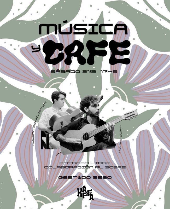 Este Sábado 21/3 vuelve la música a Kaffa de la mano de estos amigos de la casa, Lucián Echeverría y Fede Brann. ¿Dónde? En Gestido 2690 Les esperamos el 21/3 con buena música y cafecito a las 17hs