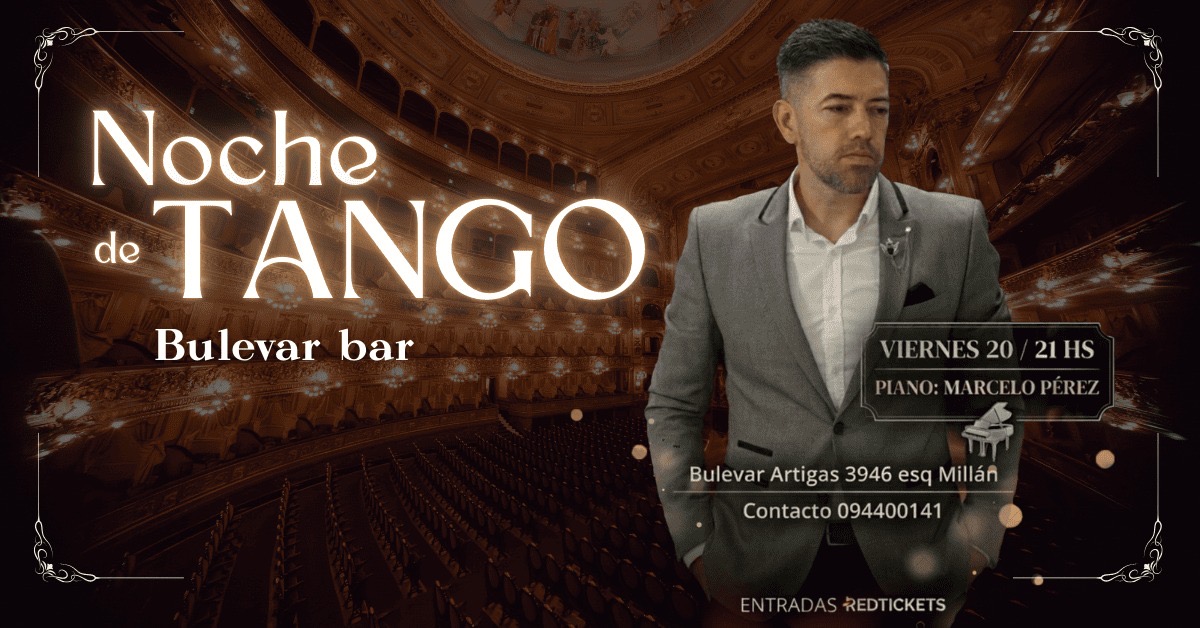 Bulevar Bar presenta un espectáculo de música y canto auténtico del Río De La Plata, una noche de Tangos para el recuerdo. Recrearemos un auténtico boliche tanguero, donde podrán disfrutar de una noche mágica a puro Tango y vivir la experiencia de una tradicional tangueria. No te pierdas una noche mística de música y canto interpretada por dos grandes artistas, Fernando López al canto y Marcelo Pérez al piano. Y para acompañar una auténtica velada tanguera, podrán disfrutar la propuesta gastronómica de Bulevar Bar. El ticket corresponde al cubierto artístico . Los cubiertos artísticos son limitados y se adquieren únicamente por Red Tickets. IMPORTANTE: LAS MESAS SE CONFIRMAN UNICAMENTE COMUNICANDOSE POR WHATSAPP AL 094400141. https://www.instagram.com/bulevar_uy?igsh=MTZhZW9iMHc2azAyOA==</