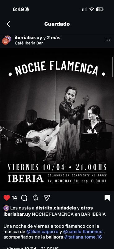 NOCHE FLAMENCA en BAR IBERIA Una noche de viernes a todo flamenco con la música de @lilian.capurro y @camilo.flamenco , acompañados de la bailaora @tatiana.tome.16 • Colaboración consciente al sobre