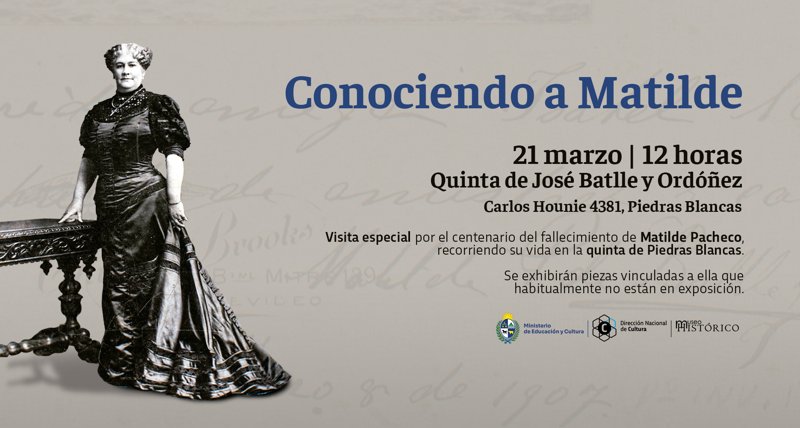 Conociendo a Matilde es una propuesta que implica una recorrida guiada por algunos espacios de la casaquinta de la familia Batlle Pacheco en el que se repasará la vida de quien fuera la señora de la casa, Matilde Pacheco. Una mujer burguesa del Novecientos, reconocida no sólo por ser la esposa del presidente José Batlle y Ordóñez sino por su audacia para desafiar pautas y convencionalismos sociales de la época. A lo largo de la actividad se exhibirán objetos que fueron de su persona o están vinculados a su historia familiar y que no se exhiben habitualmente en el museo.