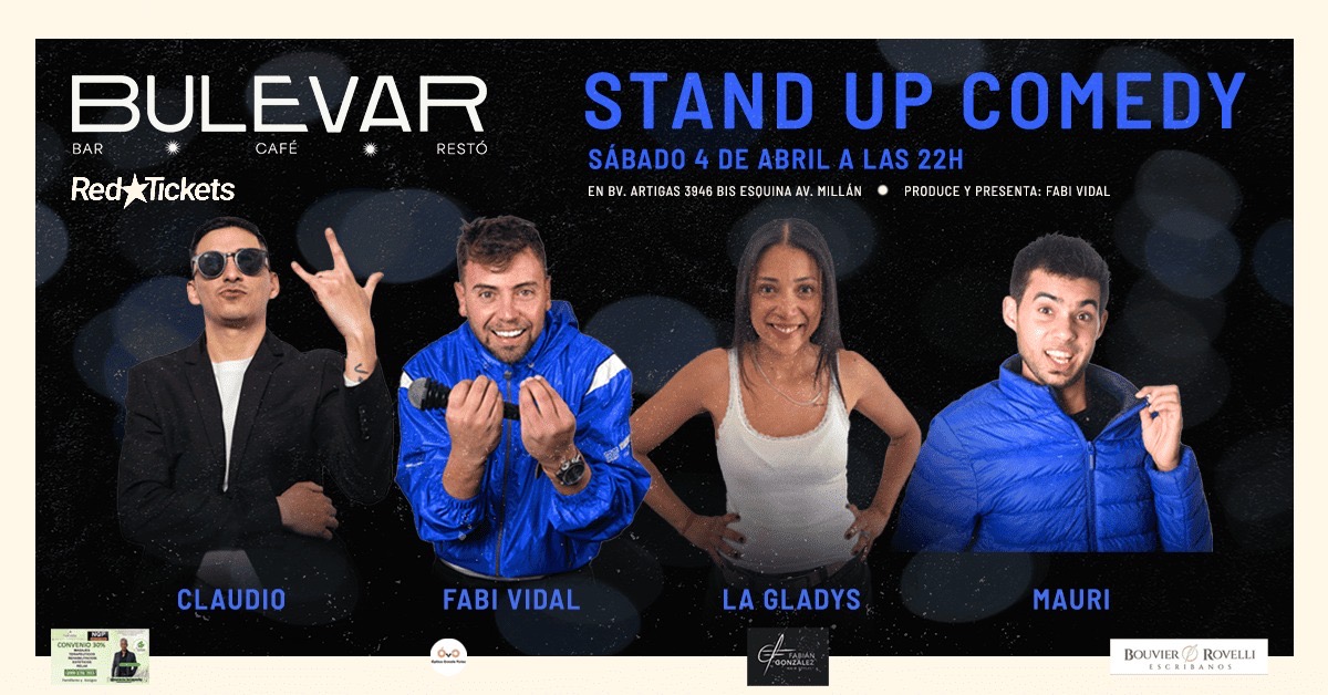 Este sábado 4 de abril preparate para reírte a carcajadas y disfrutar de un momento divertido en Bulevar Bar! Vas a ver y vivir un show de humor desopilante presentado por Fabi Vidal, que te hara morir de risa. Fabi estara acompañado de tres comediantes que no te haran parar de reir en toda la noche. Si queres pasar un lindo momento, comer rico, disfrutar con tus amigos y participar de esta experiencia, solo tenes que llevar tus ganas de divertirte. ¡Apurate, que las localidades son limitadas! Vení a vivir una noche divertida que recordaras por siempre. IMPORTANTE: LAS MESAS SE CONFIRMAN UNICAMENTE POR WHATSAPP AL 094400141. https://www.instagram.com/bulevar_uy?igsh=MTZhZW9iMHc2azAyOA==