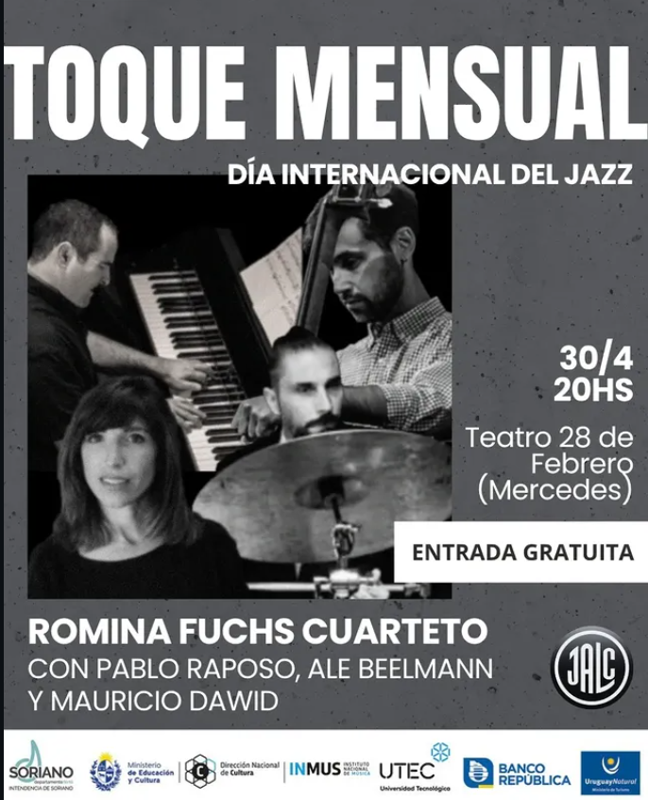 Nos va a acompañar con su música Romina Fuchs Cuarteto!!! con Pablo Raposo en piano Alejandro Beelmann en batería Y Mauricio Dawid en contrabajo. Romina Fuchs es cantante, pianista y arregladora de jazz. Su propuesta combina la interpretación de standards con arreglos originales, integrando una mirada contemporánea sobre el género. En esta ocasión presentan un concierto centrado en el diálogo a través de un repertorio que recorre distintas épocas del jazz, combinando standards con arreglos propios.