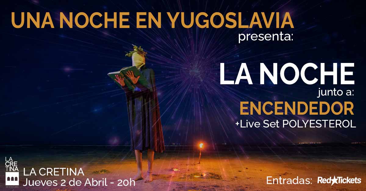Una noche en Yugoslavia presenta “La Noche”, su nuevo single, en un show en vivo que marca el inicio de una nueva etapa del proyecto. El evento será el jueves 2 de abril en La Cretina y contará con un show compartido junto a Encendedor, banda de La Paloma, con una fuerte presencia en la escena actual, en una noche que reúne dos propuestas complementarias. Además, POLYESTEROL estará musicalizando el hall del venue con un live set en la previa y durante el intermedio entre bandas. El show funciona como anticipo del disco que Una noche en Yugoslavia lanzará en diciembre.
