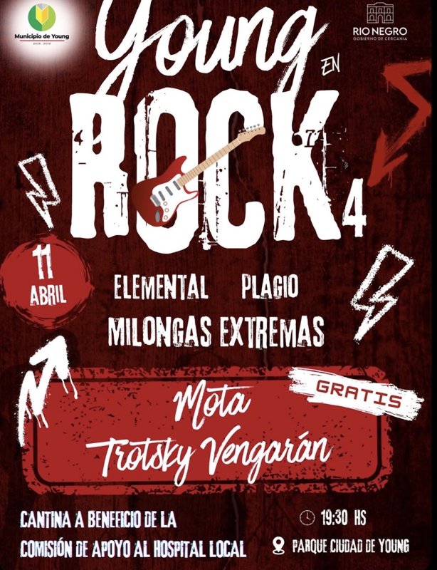 Este 11 de abril llega el 4° Young en Rock Parque Ciudad de Young. Servicio de cantina a total beneficio de la Comisión de Apoyo al Hospital Local.